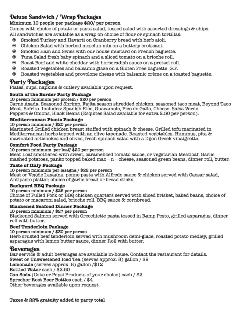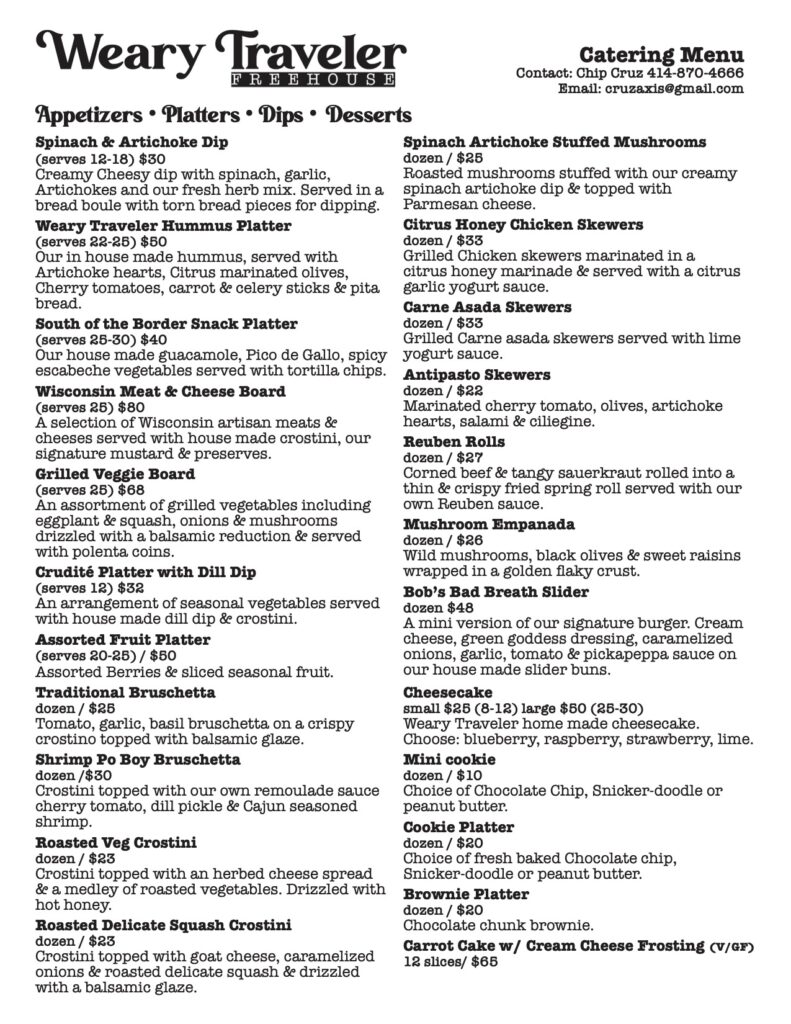 Weary Traveler Catering Menu Please email Melissa Cruz at melissacruz.wtf@gmail.com for all catering needs.